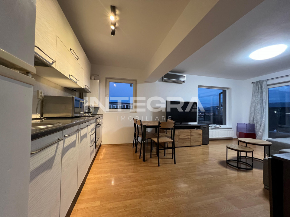Integra Imobiliare vă propune spre închiriere un apartament cu 3 camere, semidecomandat, remarcabil prin terasa sa generoasă – un spațiu ideal pentru relaxare, dotat cu grătar și balansoar, de unde puteți admira o panoramă superbă asupra orașului.